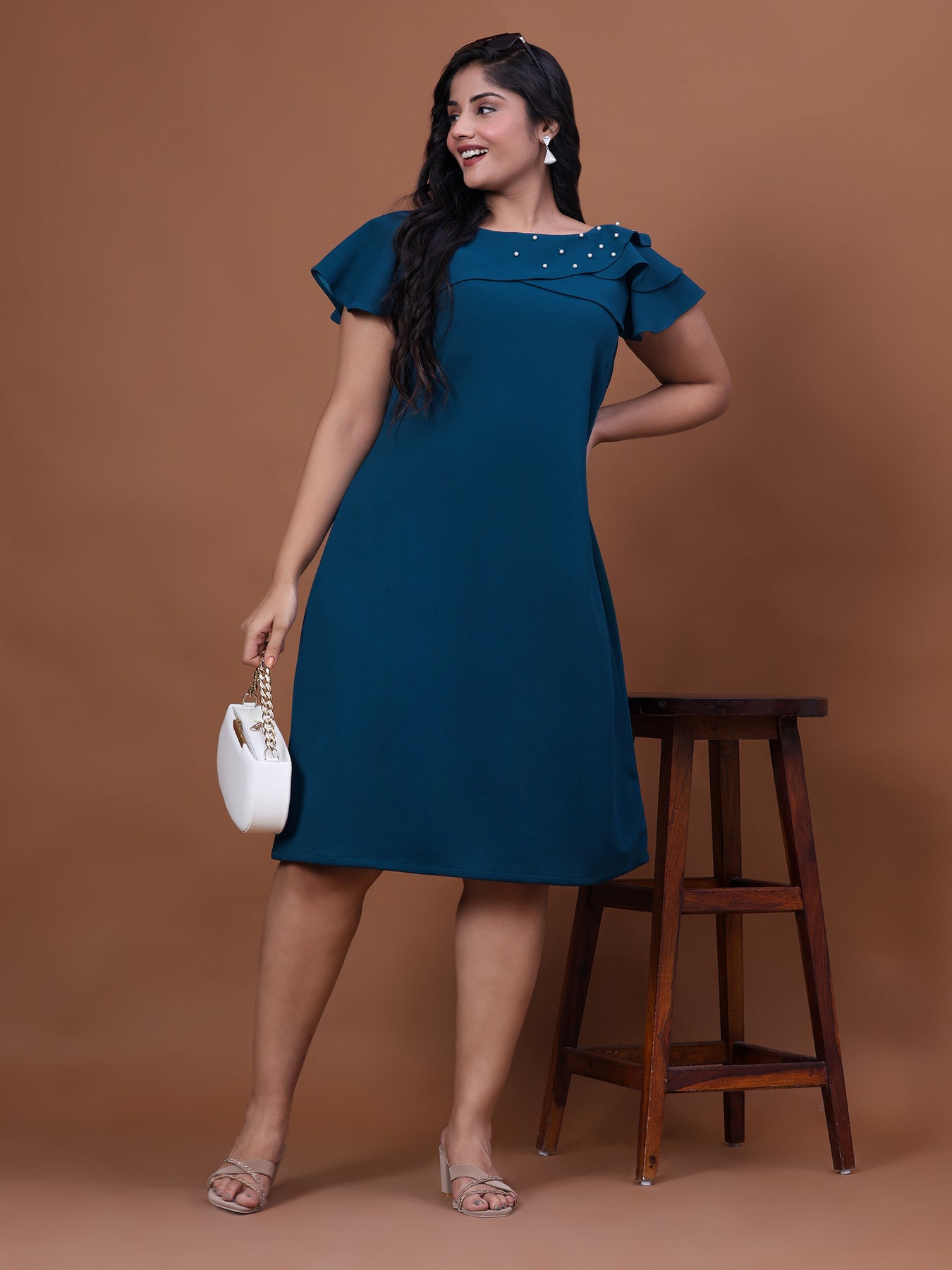 just purchased Teal Blue Off Shoulder A-Line Party Wear Dress