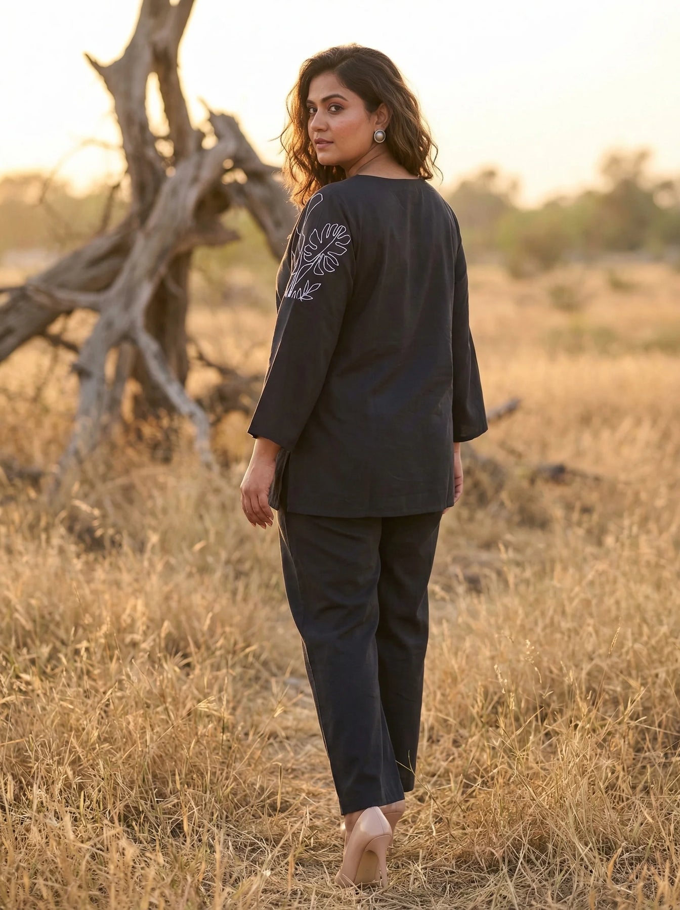 just purchased Black Designer Resort Wear Co-ord With White Embroidery