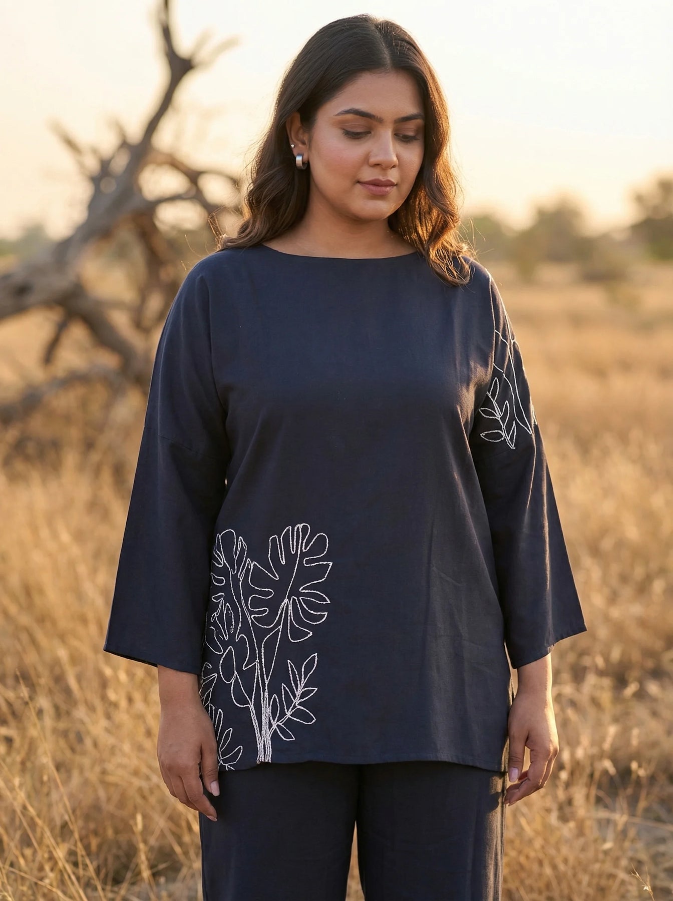 Shop summer co ord sets for women. Discover trendy, breathable and stylish outfits perfect for casual wear, vacations and daily fashion. Why Choose Basic When You Can Embrace Your Bold And Beautiful Charms With Our Classic All-black Casual Resort Wear Co Ords? Our Designer Resort Wear Co-ord Is For Those Who Want To Explore The Town Throughout The Day In A Comfy Outfit. Our Black A-line Top With Bell Sleeves Has Enticing White Dori Embroidery To Add A Touch Of Elegance To Your Outfit. The Loose-fit Pants Give You The Freedom And Comfort To Walk On The Streets As You Make Some Happy Memories To Cherish For Life! That's Not All; You Can Wear This Beauty To Casual Hangouts And Errands After The Vacation Bliss Ends.