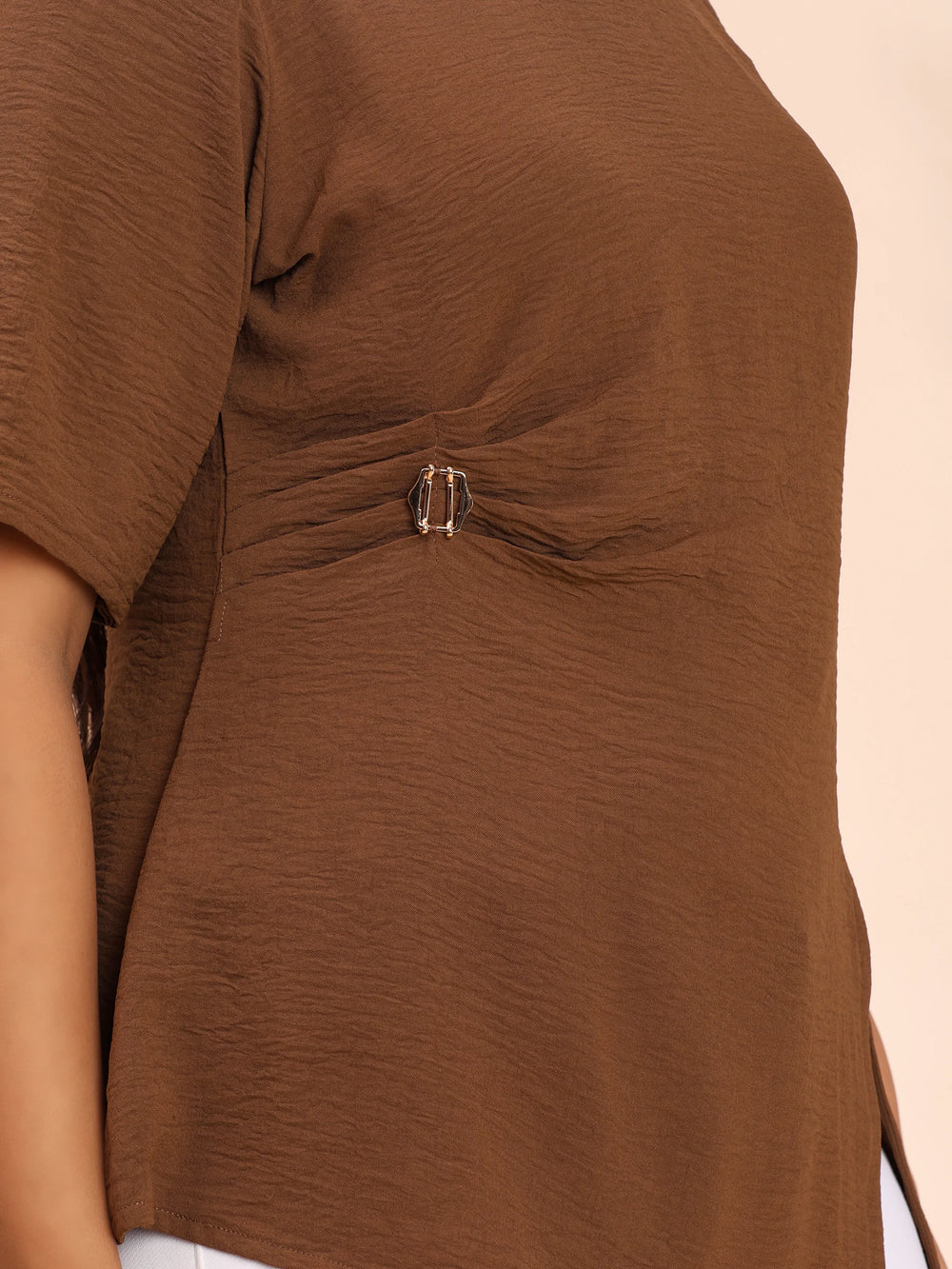 Focus on choosing tops with curves and detailing on the waist. Avoid tops with closed shoulders as they draw more attention to the upper body. Curvy Lane has stylish wrap dresses and one-shoulder dresses that look good on top-heavy women.