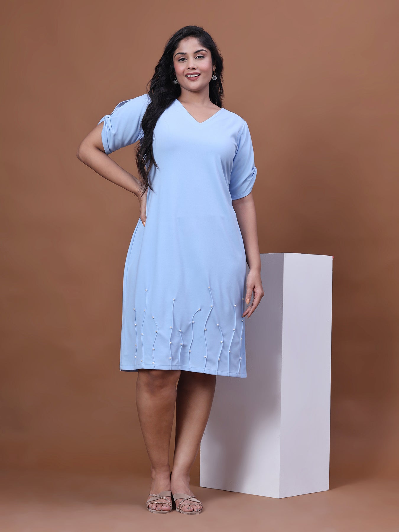 just purchased Sky Blue Solid Party Wear Dress for Women with V-Neck