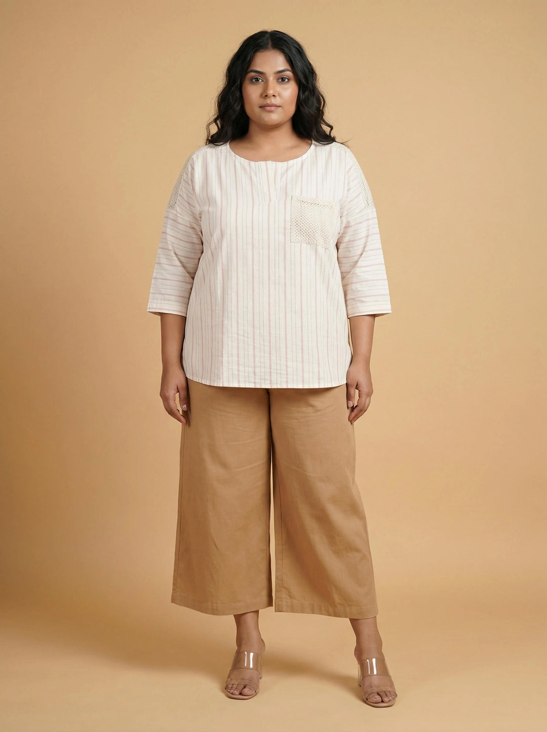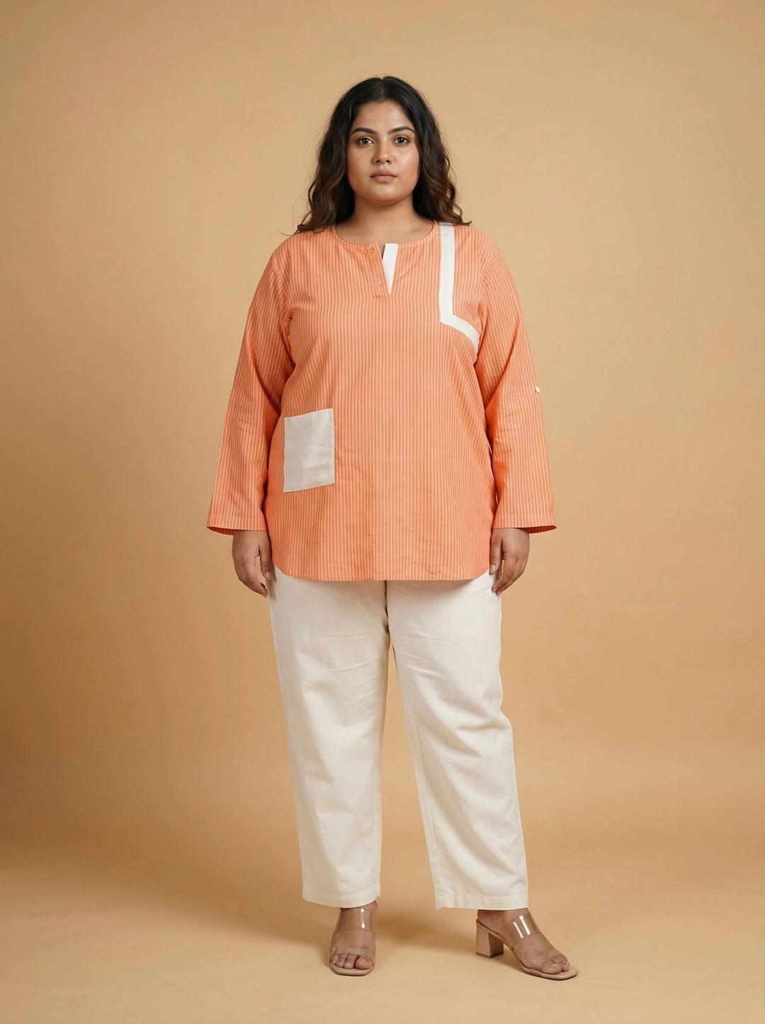 When styling the plus size top for a formal occasion, choose solid or minimal prints and pair them with trousers or pants. Choose sleek, minimalistic jewellery and keep your hair simple. For a casual setting, you can wear the top with jeans or palazzo and use statement jewellery to add an exciting element to the dress. For a vacation look, you can use sandals and jewellery based on your personal style.