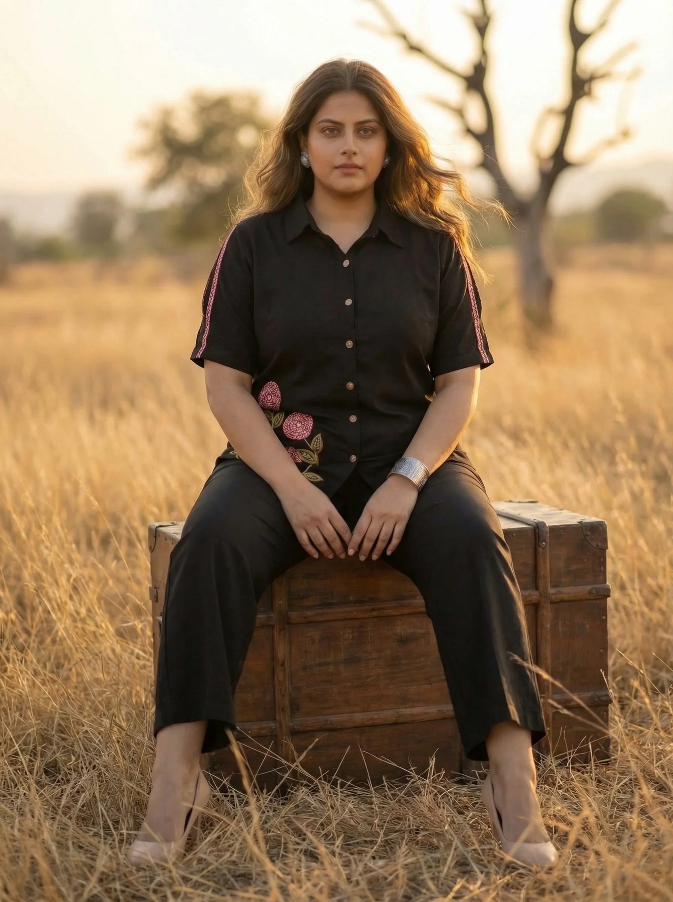 Shop women summer co ord set styles. Discover trendy, breathable and comfortable outfits perfect for casual wear and vacations. The Weather Might Be Breezy, But Keep Your Fashion Game On Point With Our Natural Casual Cotton Co Ords! We Gave The Classic Shirt And Loose Pant Combo A Vacation Vibe So You Can Slay While Relaxing In The Resort Lounge. The Classic Collared Shirt With Bishop Sleeves Has A Pretty Pink Handwork Detailing On The Shirt And The Sleeves. Pair It With Statement Earrings Or A Bohemian Bag As You Go Street Shopping With Your Loved Ones All Day Long!