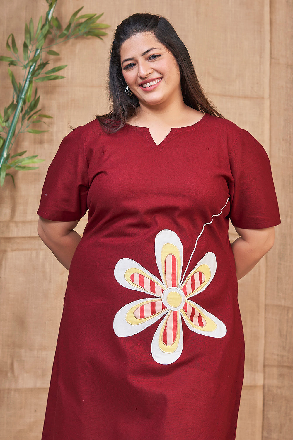 Our Maroon summer plus size dress with floral embroidery is a classic